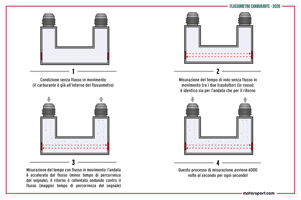 Informasi mengenai laju aliran bahan bakar ini sangat penting, namun hanya menjadi langkah awal dari fungsi yang baru. flow meterPada tahun 2026, situasi akan menjadi lebih rumit. Sensor yang dikembangkan oleh Allengra tetap akan mengukur kecepatan aliran berdasarkan massa, namun mulai tahun ini, FIA akan memperkenalkan parameter pengawasan tambahan.