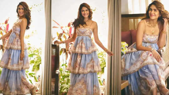 For those who love a soft and romantic look, Mrunal Thakur’s fairytale dress is the ideal choice. This outfit is delicate yet captivating, offering a fresh take on floral patterns without the usual reds or velvet drama. It’s perfect for girls who want to look elegant without overcomplicating their style.