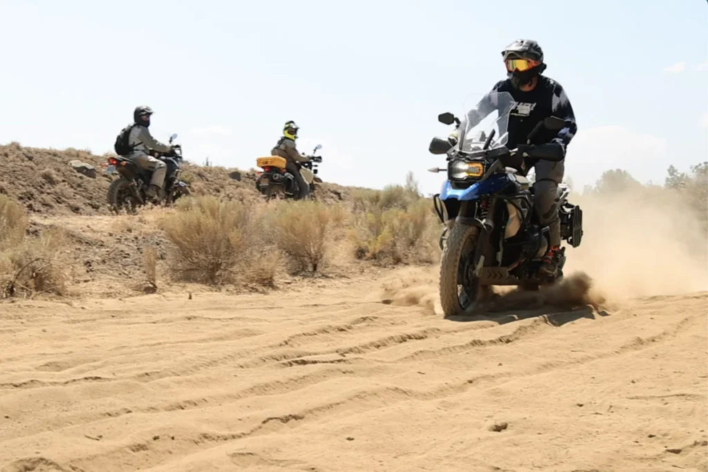 Look for vegetation or ruts—both show you where it’s been stable enough for others. Once you see soft sand coming, commit. Roll on the throttle, stay light on the bars, and trust the bike. Hesitate, and you’re digging trenches.