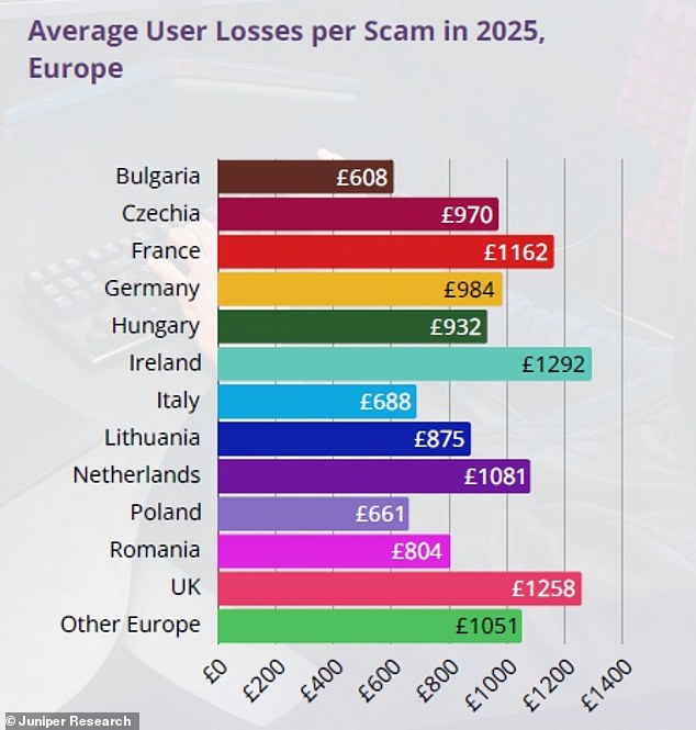 In the UK, scam adverts generated £430.4 million in revenue for social media platforms last year, according to Juniper Research. This represents 9.3% of the total European revenue from scam adverts, with France and Germany also showing similar figures. However, the UK typically experiences higher losses per scam, second only to Ireland, with an average loss of £1,258 per scam in 2025.
